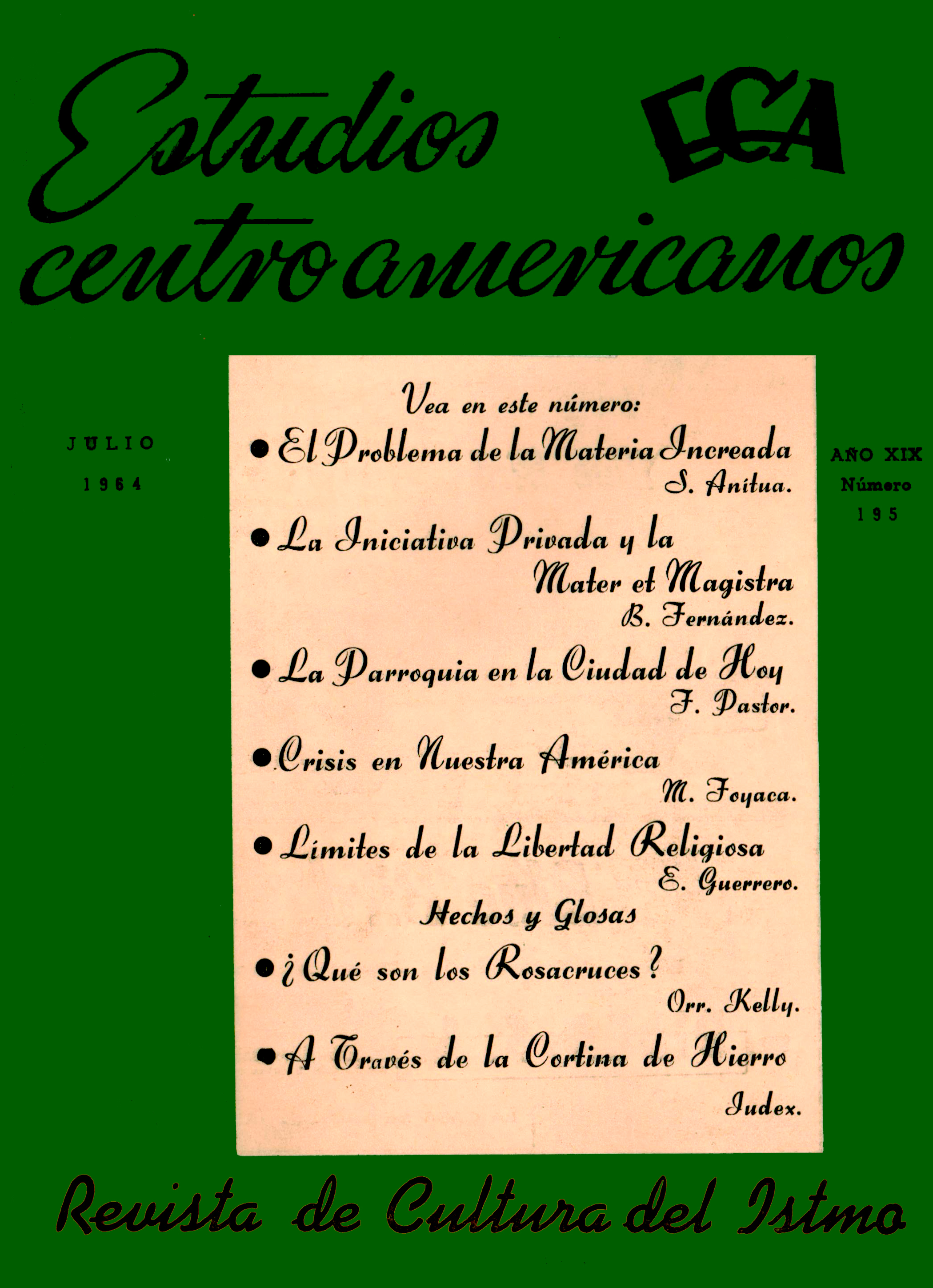 ECA Estudios Centroamericanos, Vol. 19, No. 195, 1964: 196-199.