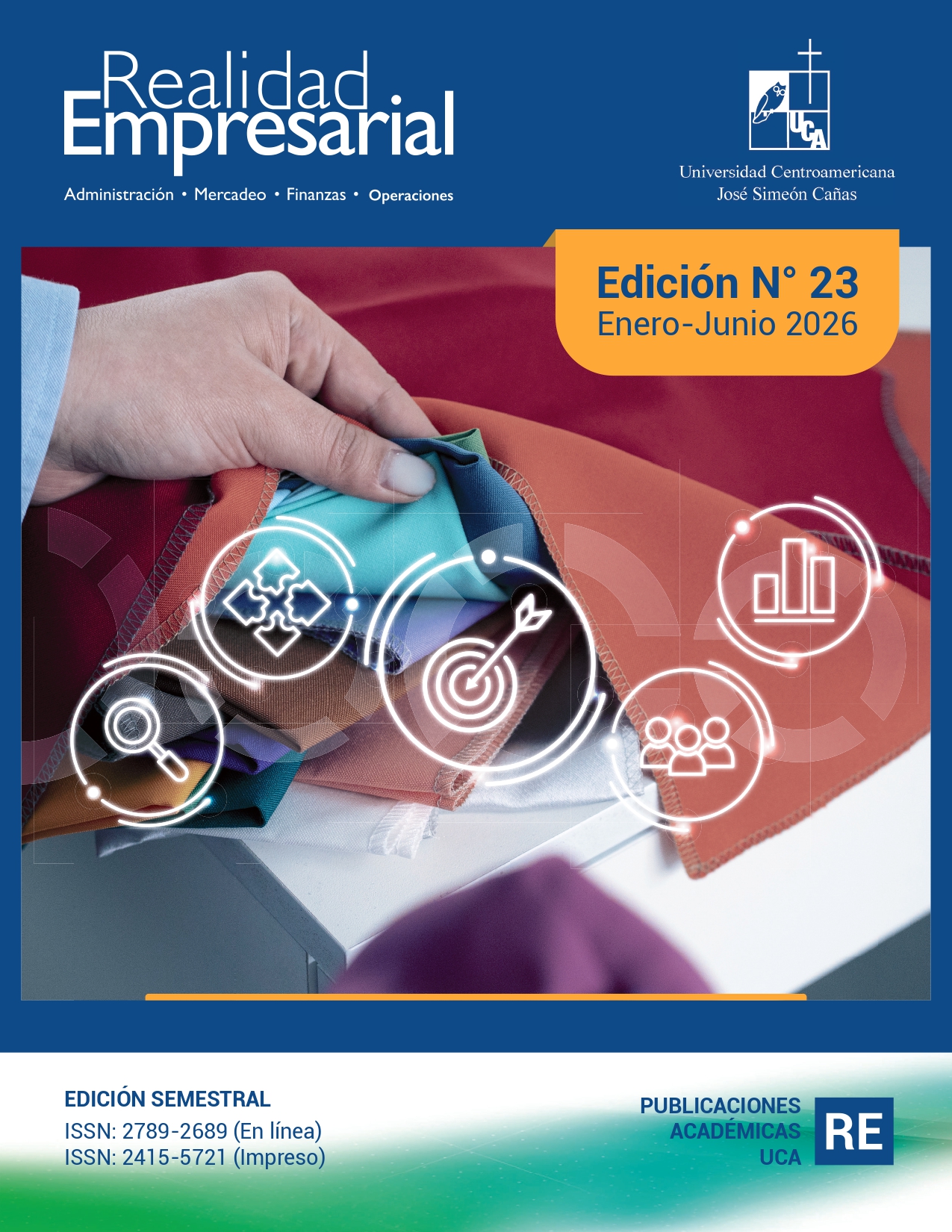 Realidad Empresarial es una publicación semestral de los Departamentos de Administración de Empresas, Contabilidad y Finanzas, además del departamento de Operaciones y Sistemas de la Facultad de Ingeniería y Arquitectura de la Universidad Centroamericana José Simeón Cañas.